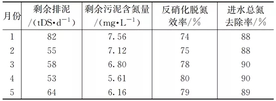 從檢測結果來看,剩余污泥組分的含氮量平均值約為4%。通過核算每日系統中排放的剩余污泥干固量,基本能夠確定從系統中排出的tn的含量。